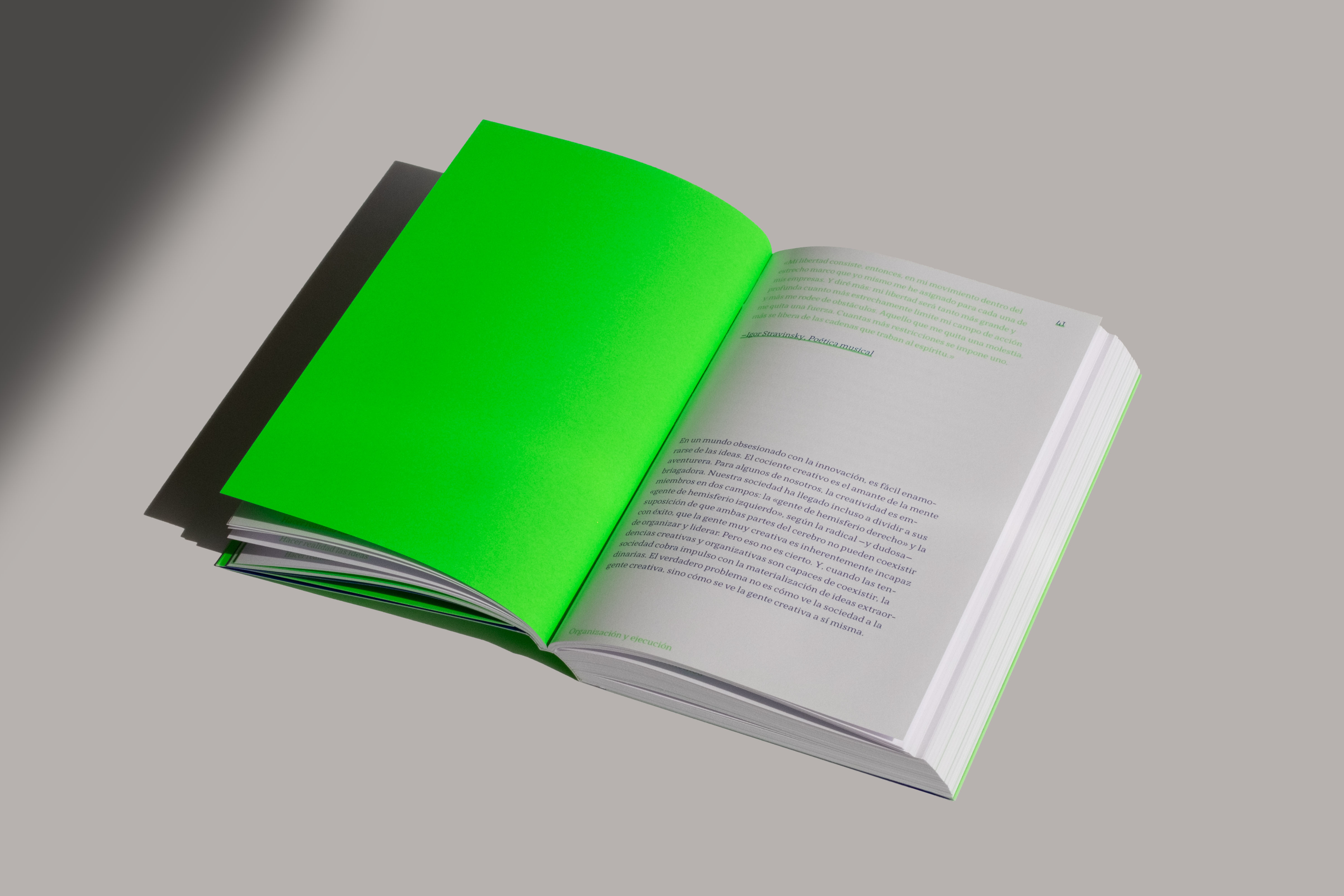 Work commissioned by Editorial GG —Spanish publishers of Bruno Munari, Milton Glaser, Rem Koolhaas, or Ellen Lupton— who fortunately accepted the proposal of doing just the opposite of what we did in our previous book (”Cada uno ve lo que sabe”): introducing a HUGE constraint to use only one font family, in only one weight, and only three sizes (headline, body, and auxiliary)... Oh, and the same layout for the whole book, cover included 🥨️.