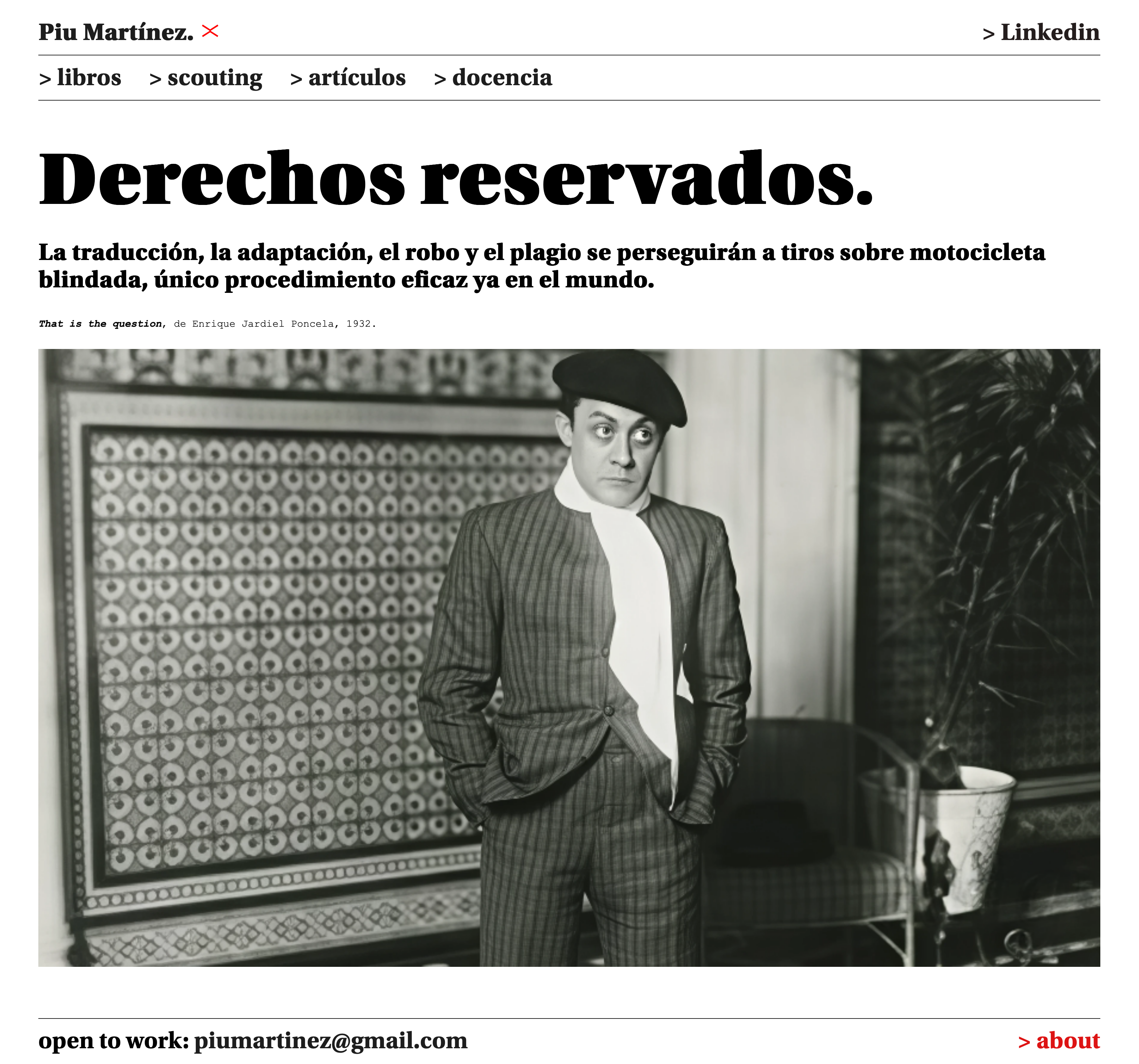 Developed from scratch in WordPress by Adria Gil, the site allows Piu to manage her portfolio independently while maintaining strong visual impact.